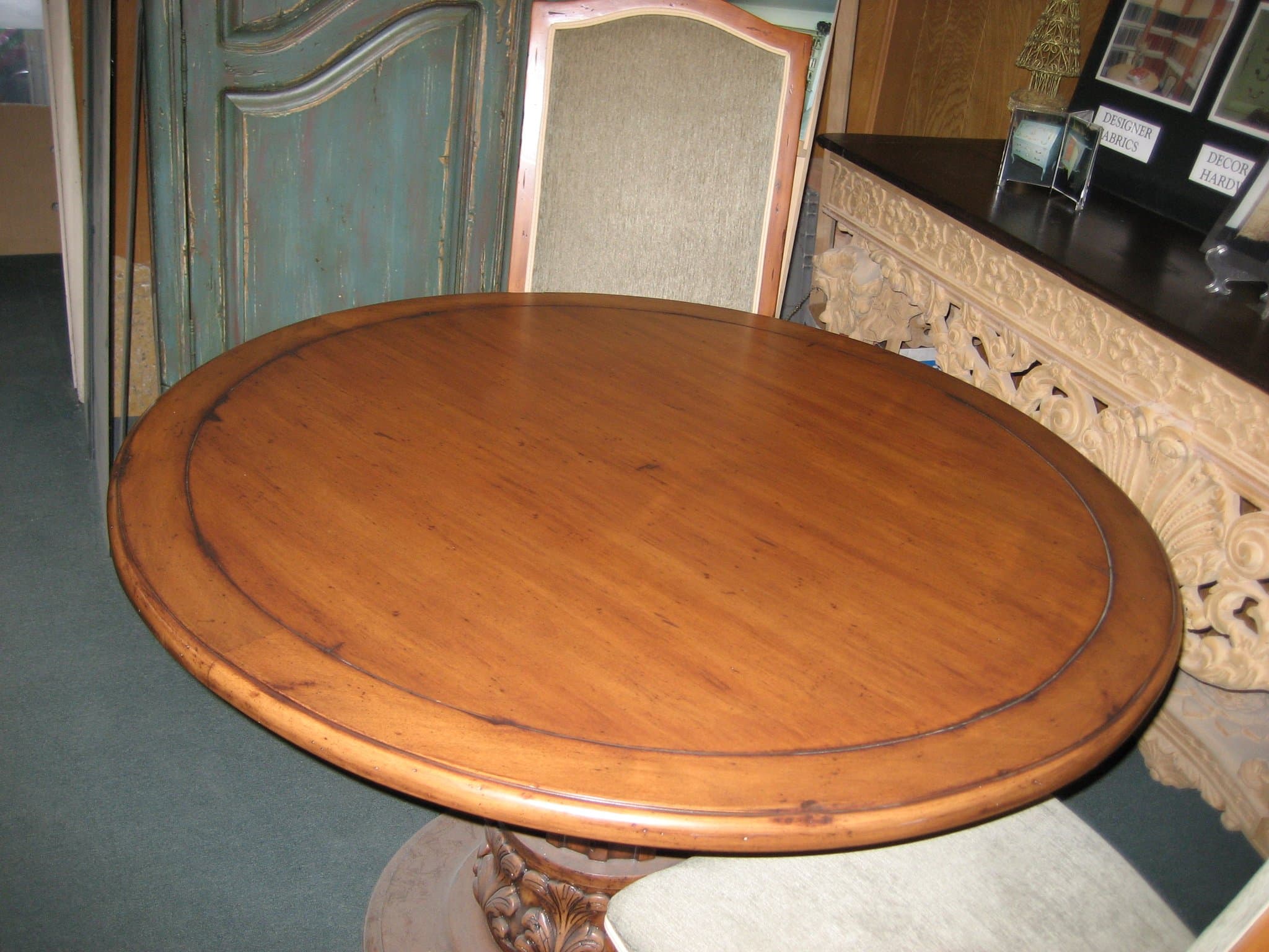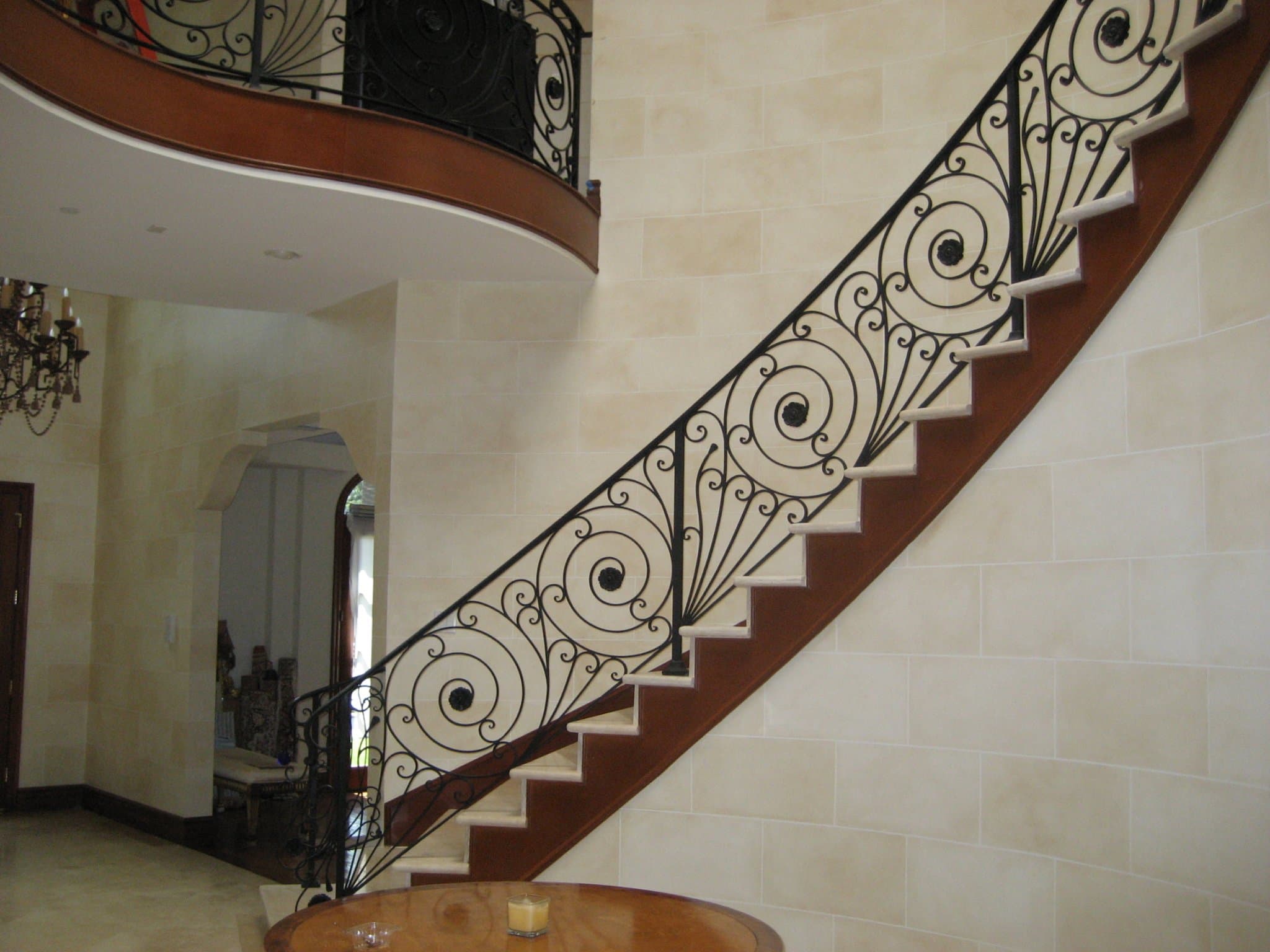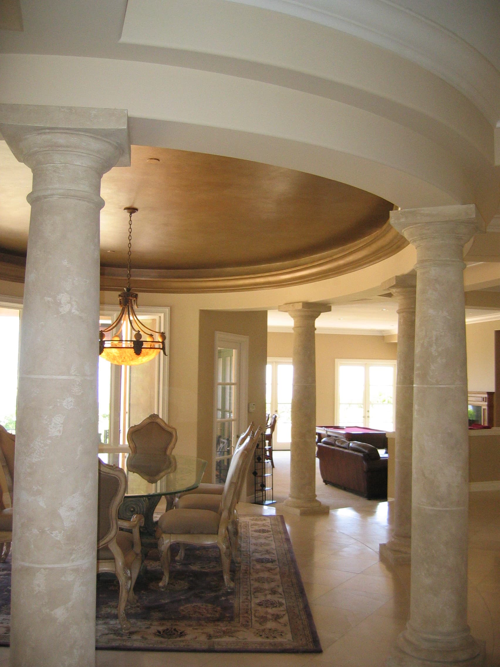 A masterful decorative technique that mimics the intricate artistry of traditional marquetry. This process involves applying different shades of stain to wood, creating the illusion of inlaid patterns and delicate designs without the need for actual wood inlays. Faux marquetry enhances floors, furniture, and architectural details.