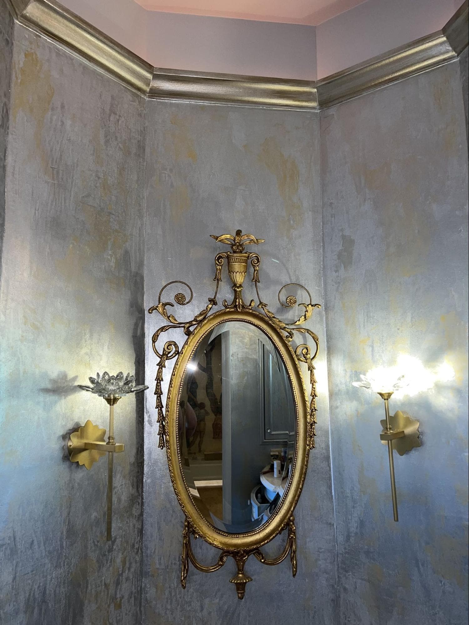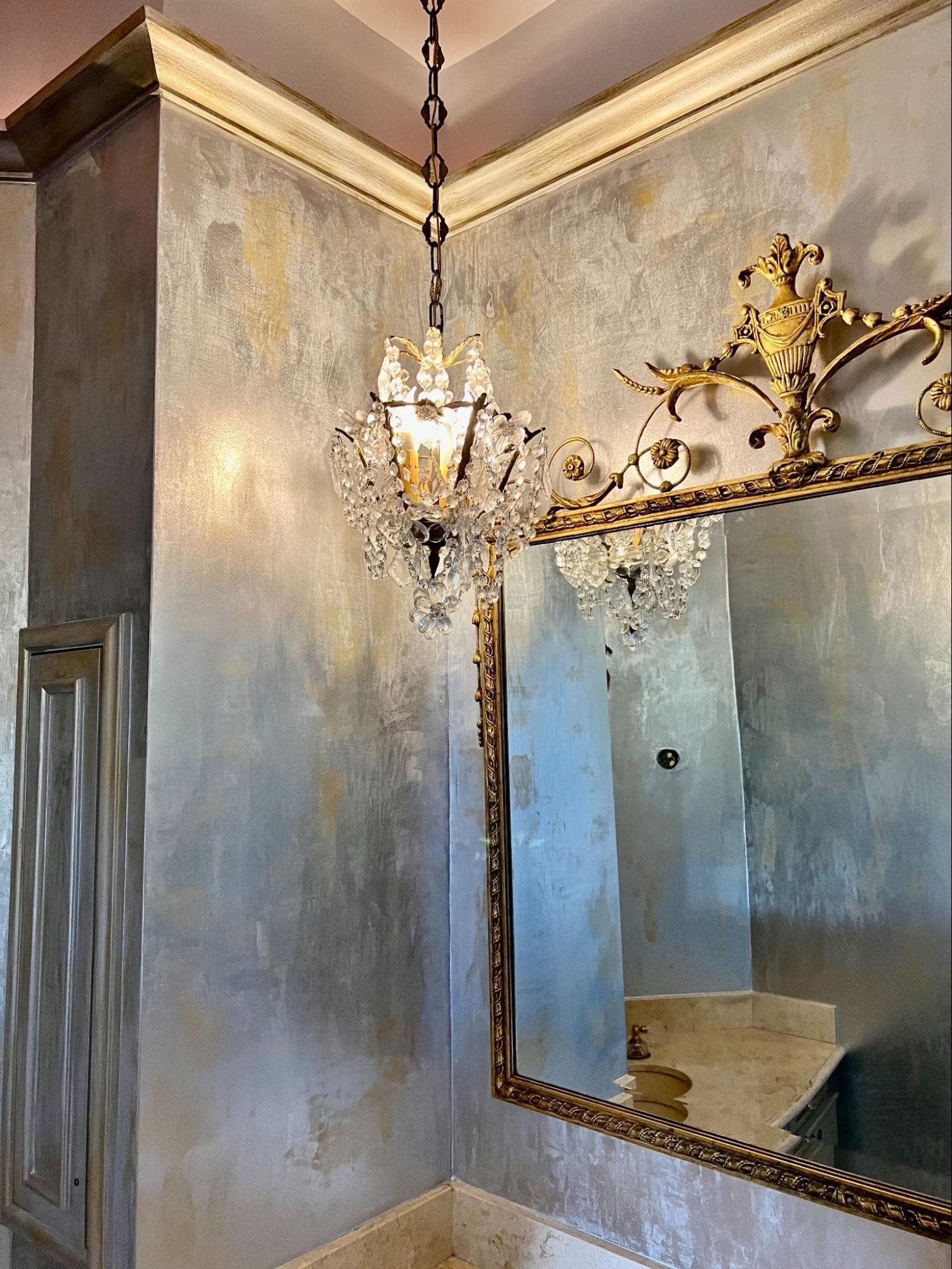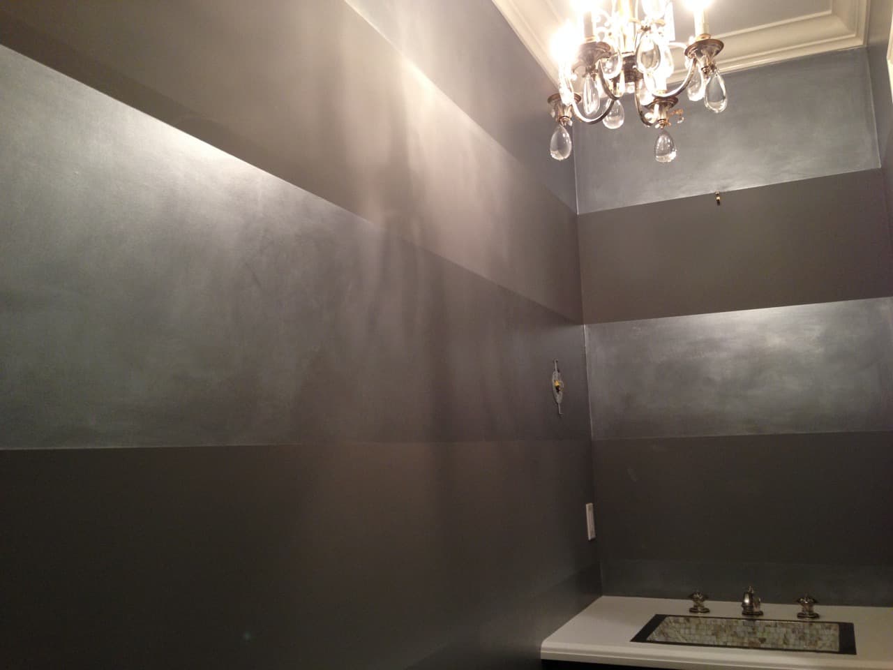 A luxurious and glamorous finish that enhances any space with its shimmering elegance. This technique seamlessly blends silver and gold metallic tones, making it a striking choice for both modern and traditional interiors. Ideal for powder rooms or accent walls.