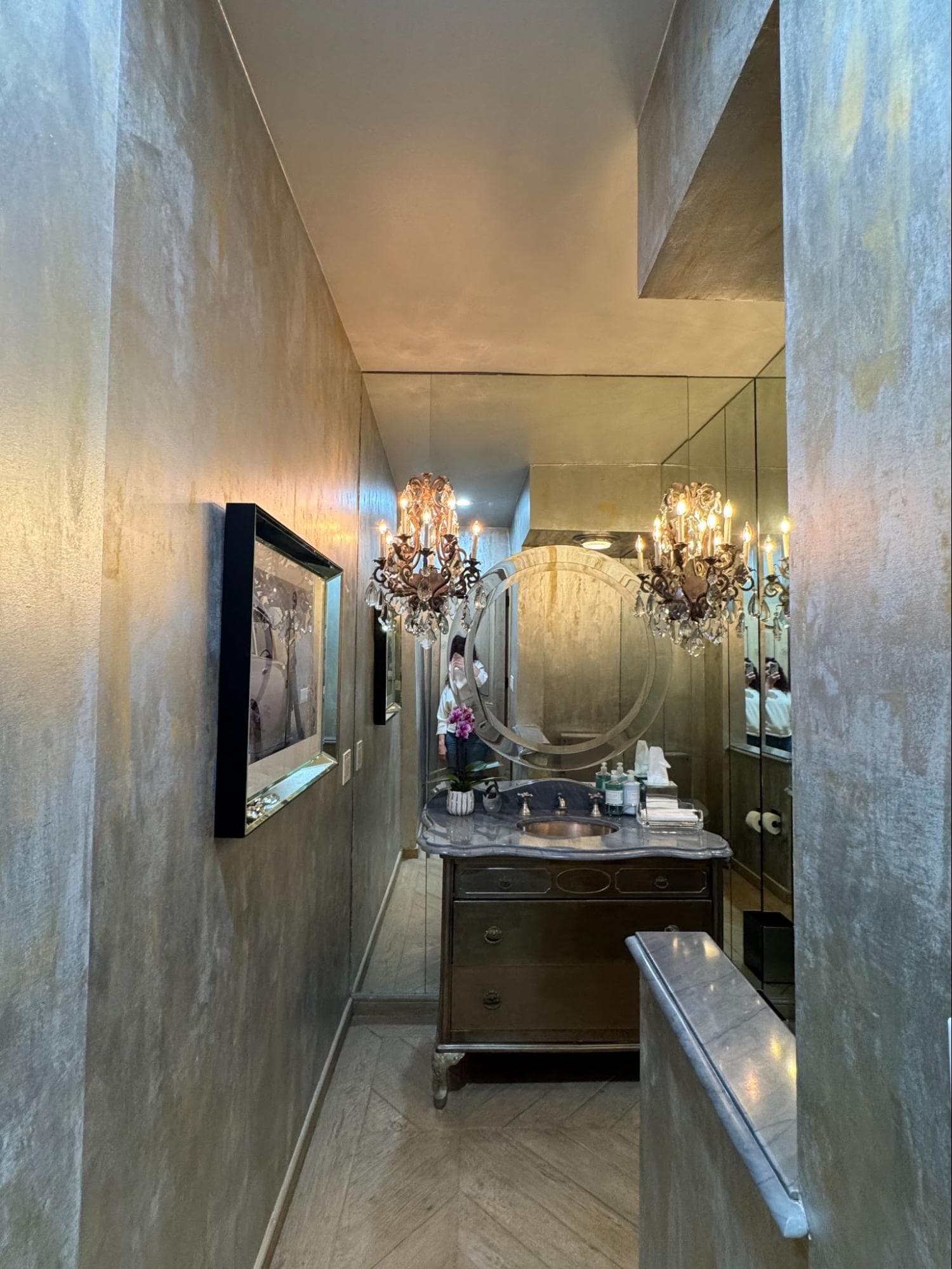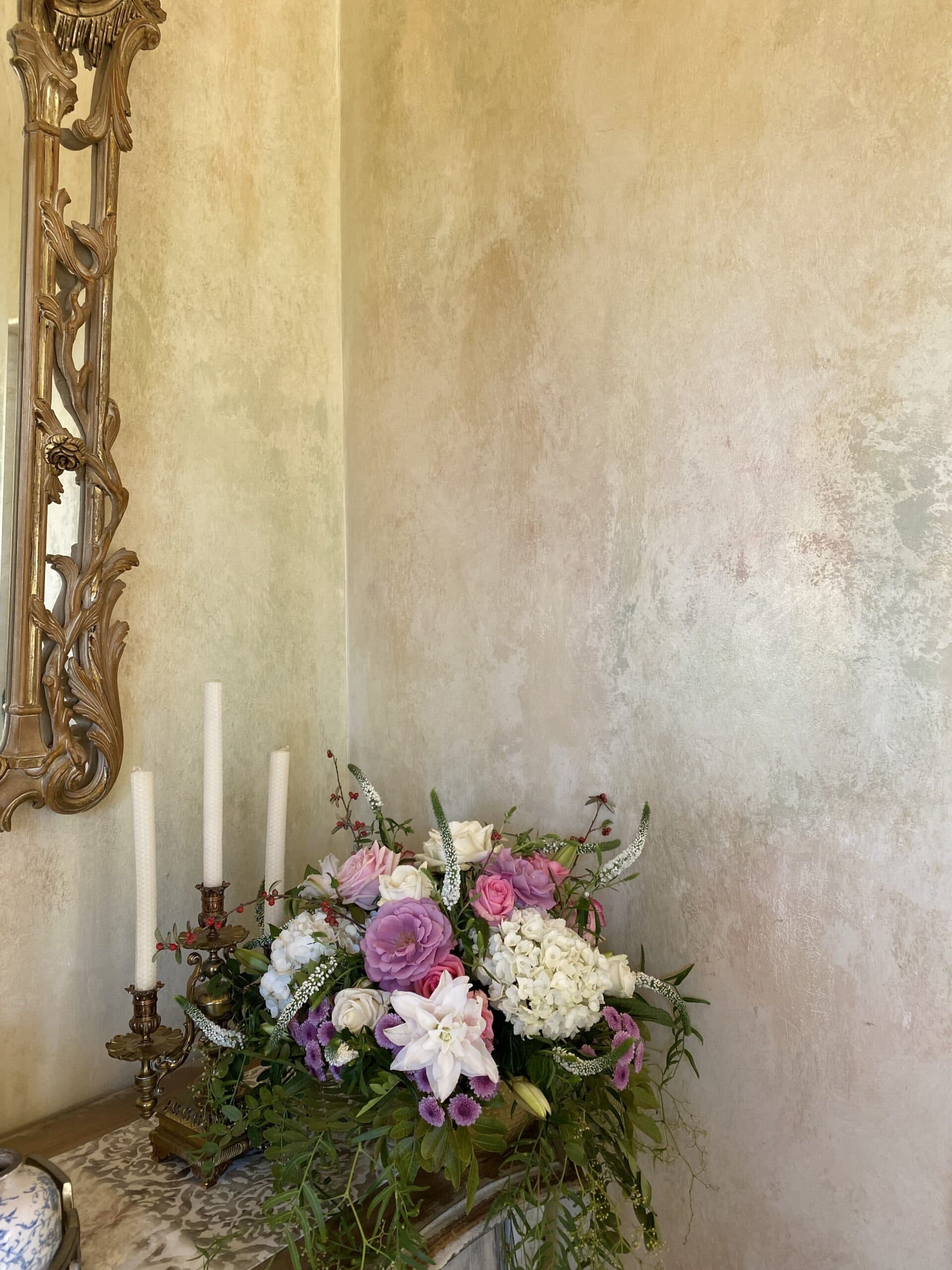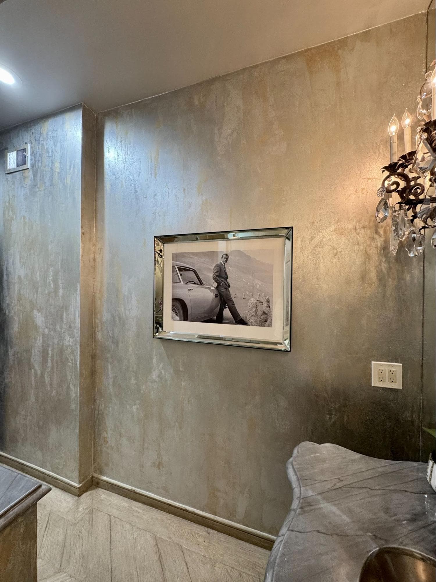 A luxurious and glamorous finish that enhances any space with its shimmering elegance. This technique seamlessly blends silver and gold metallic tones, making it a striking choice for both modern and traditional interiors. Ideal for powder rooms or accent walls.