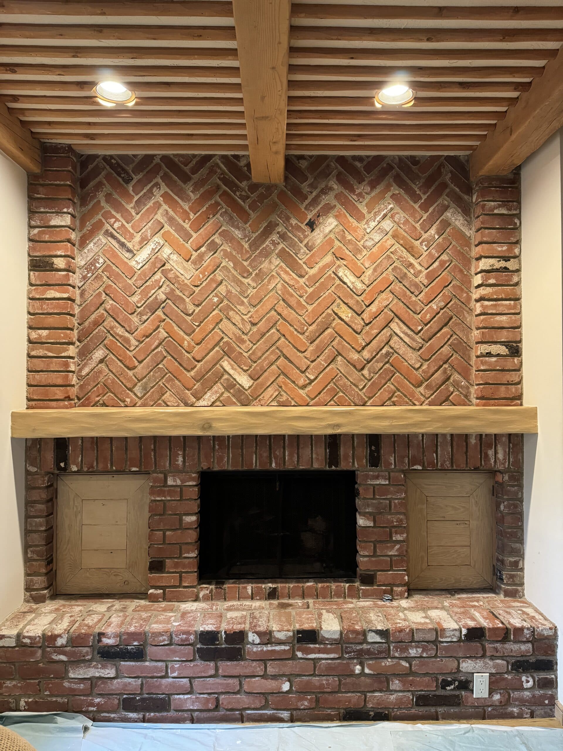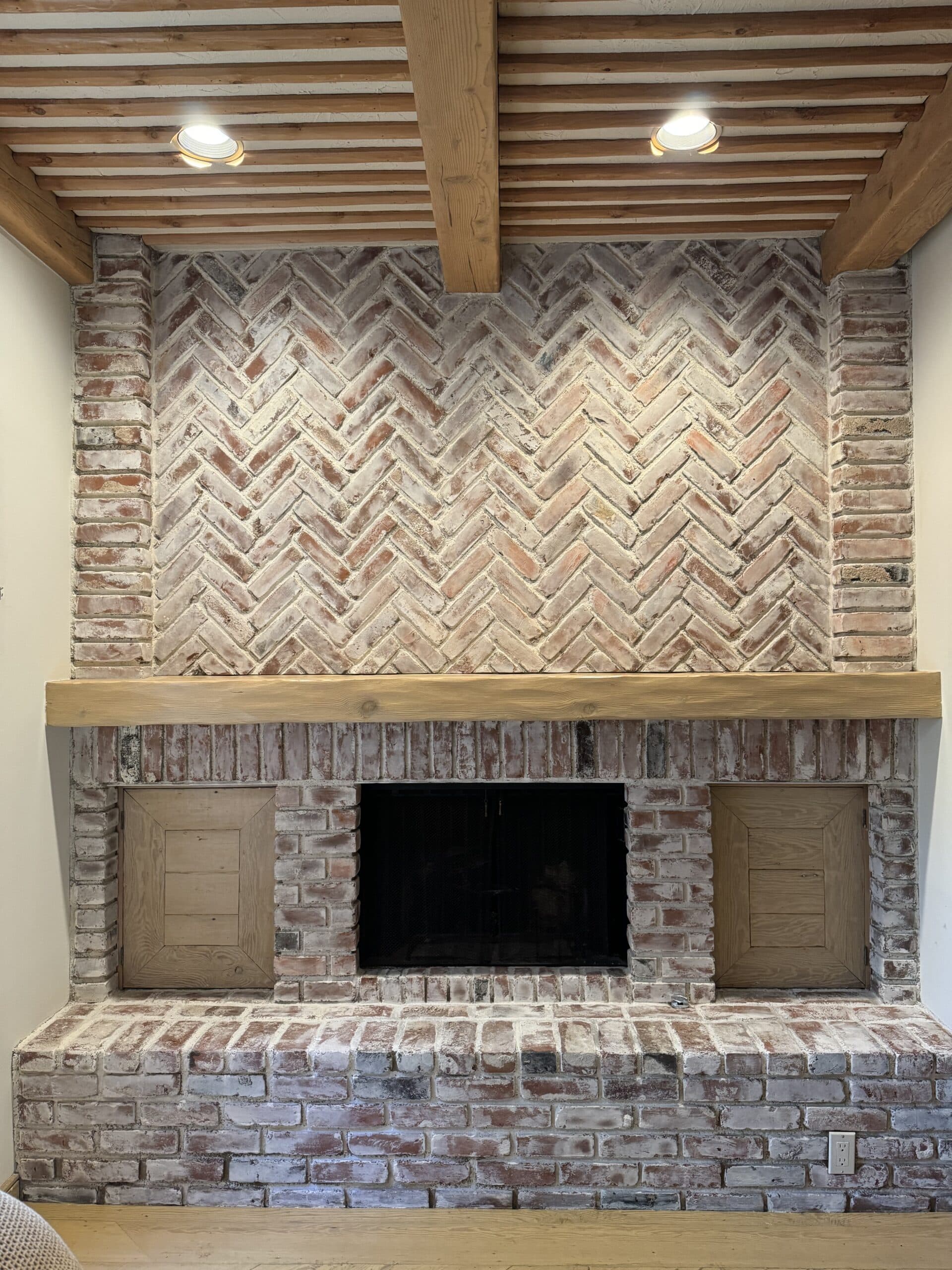 Lime Wash Finish on Brick Fireplace (before after)