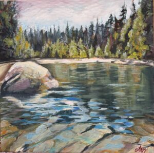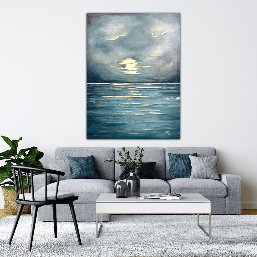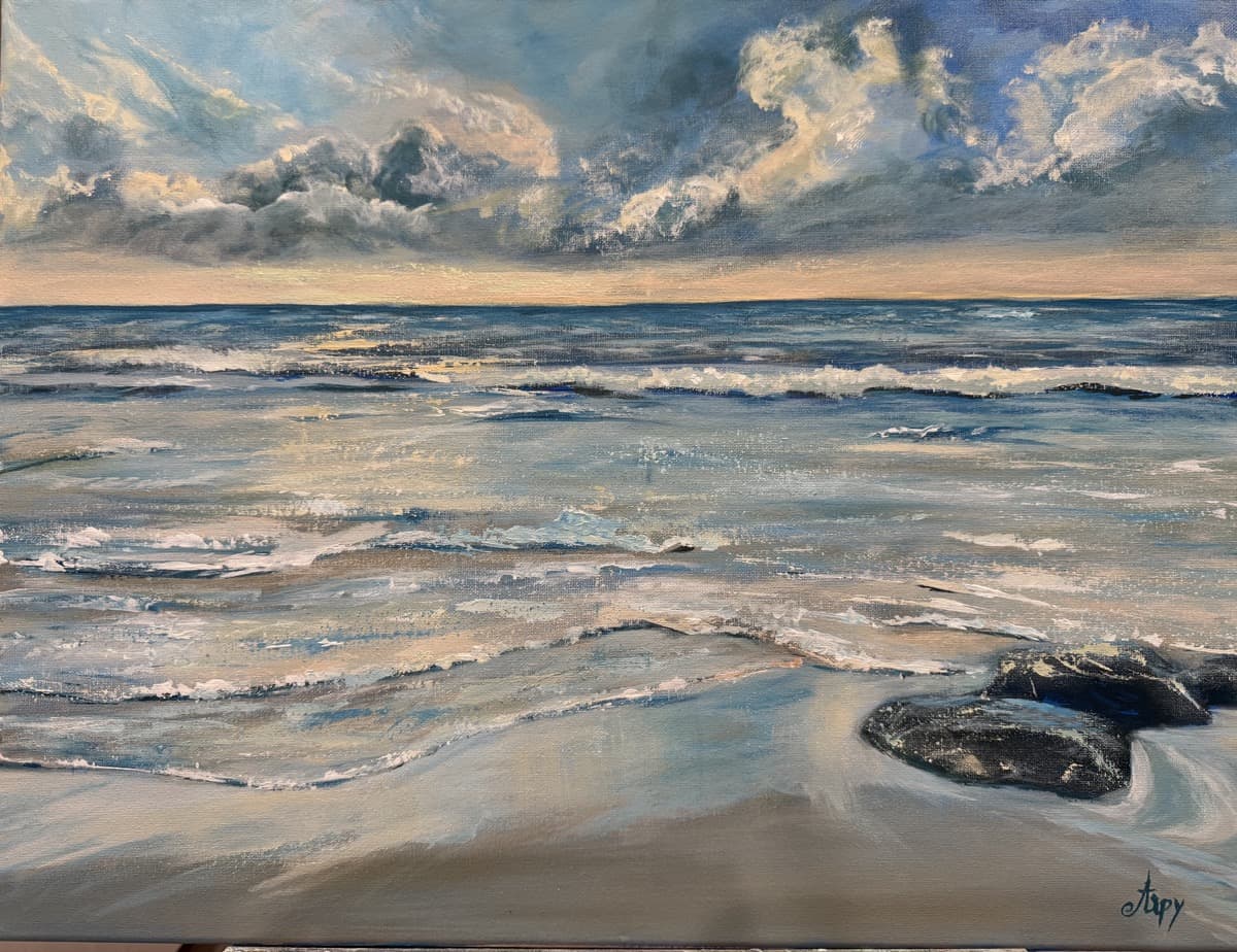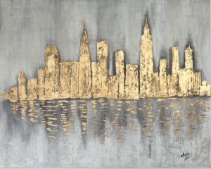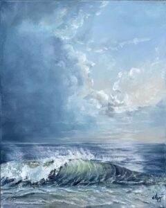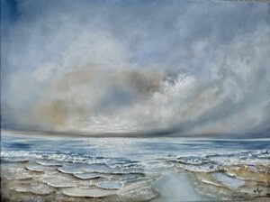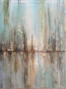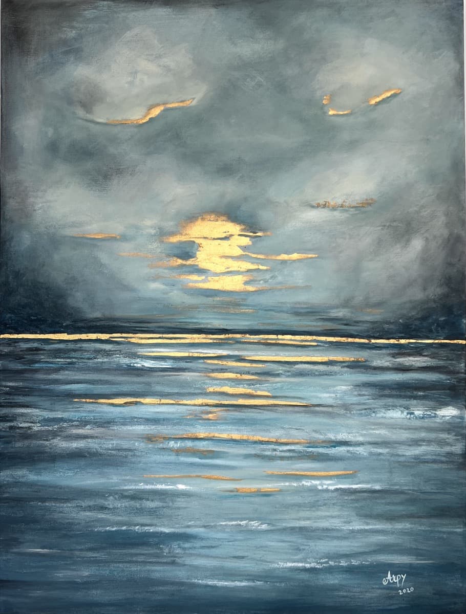 My seascapes reflect a deep personal connection to the sea, inspired by my childhood along the Mediterranean coast. Through abstract and textured compositions, I layer plaster, metal leaf, and mixed media to capture the shifting light, movement, of the ocean.