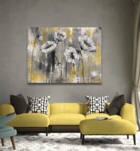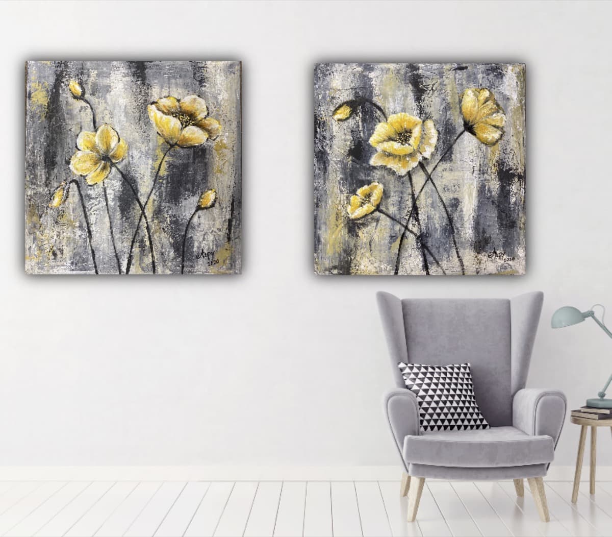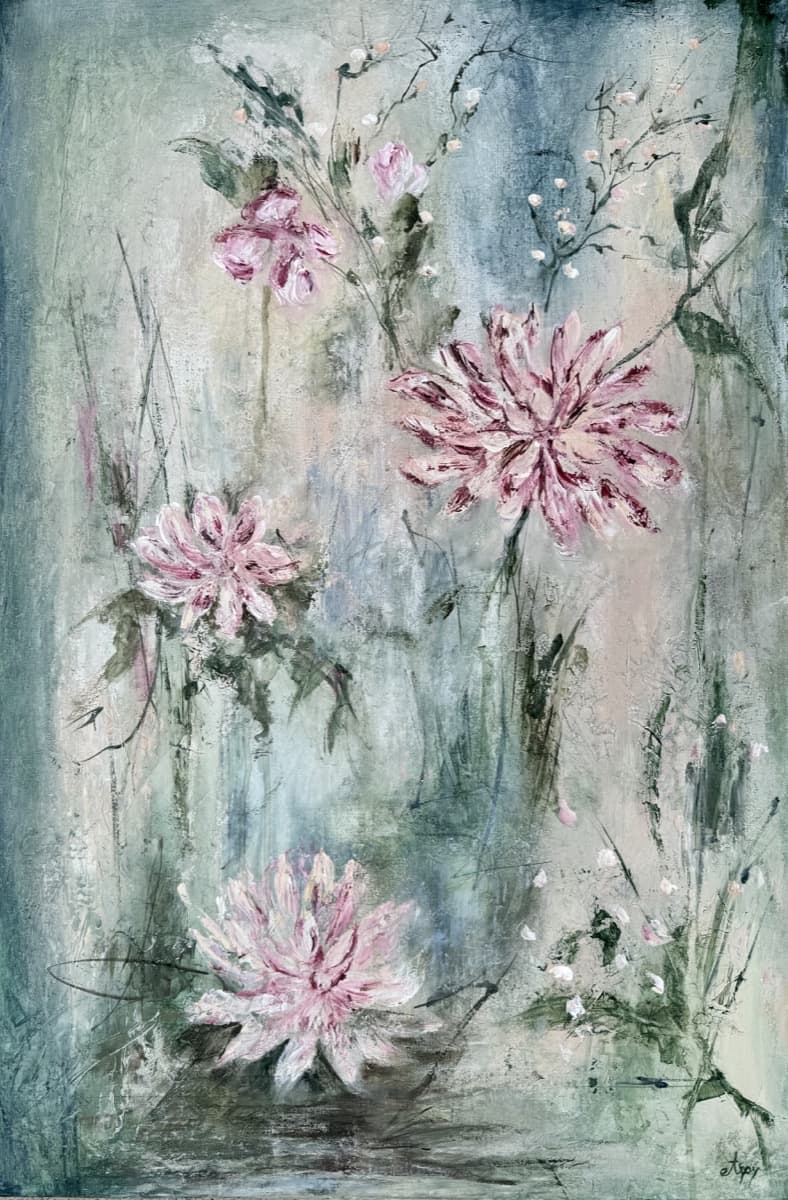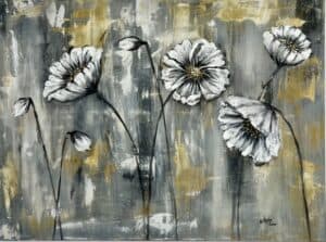 Textured floral artworks enriched with gold and silver leaf, inspired by my love of flowers.