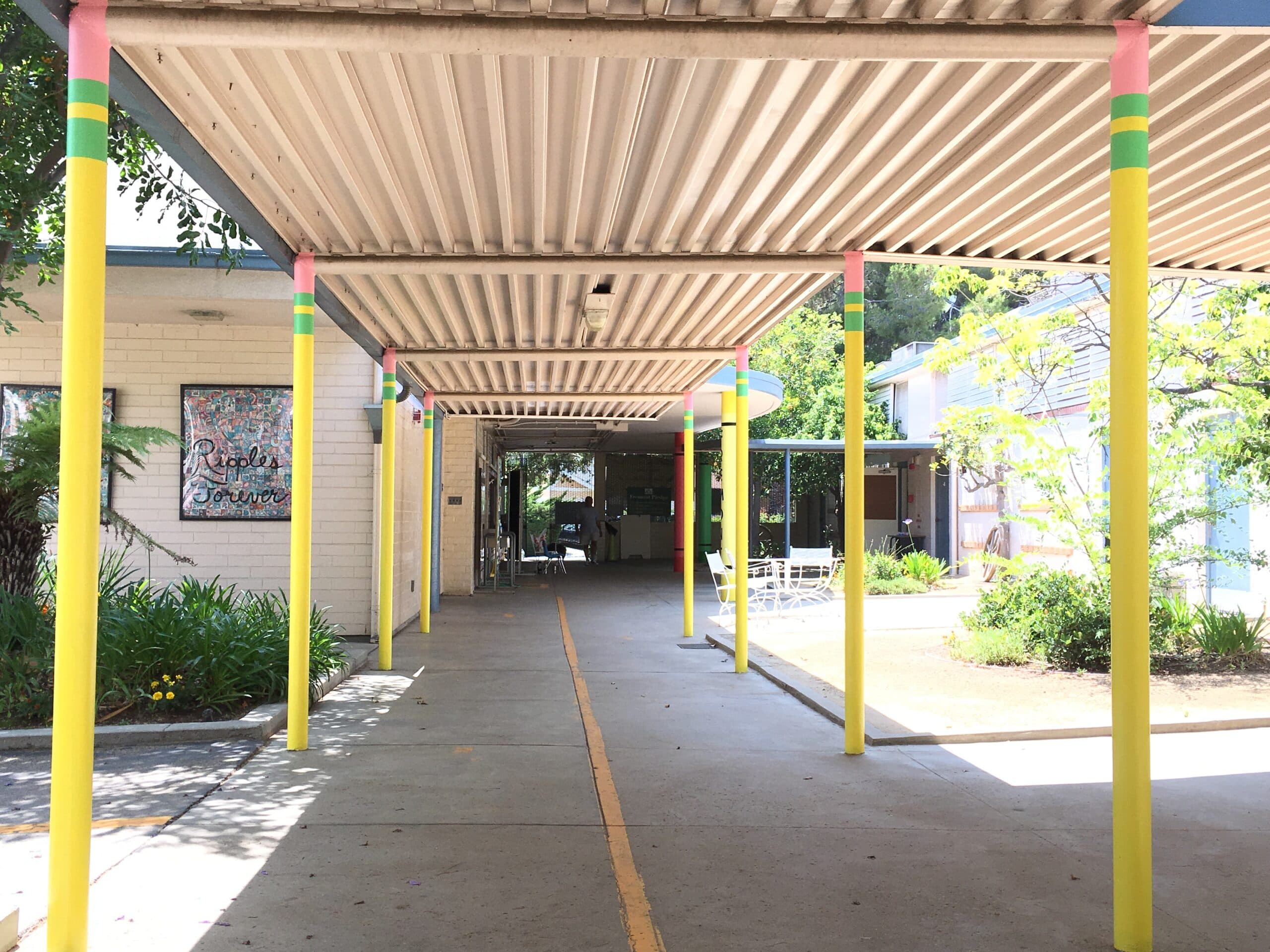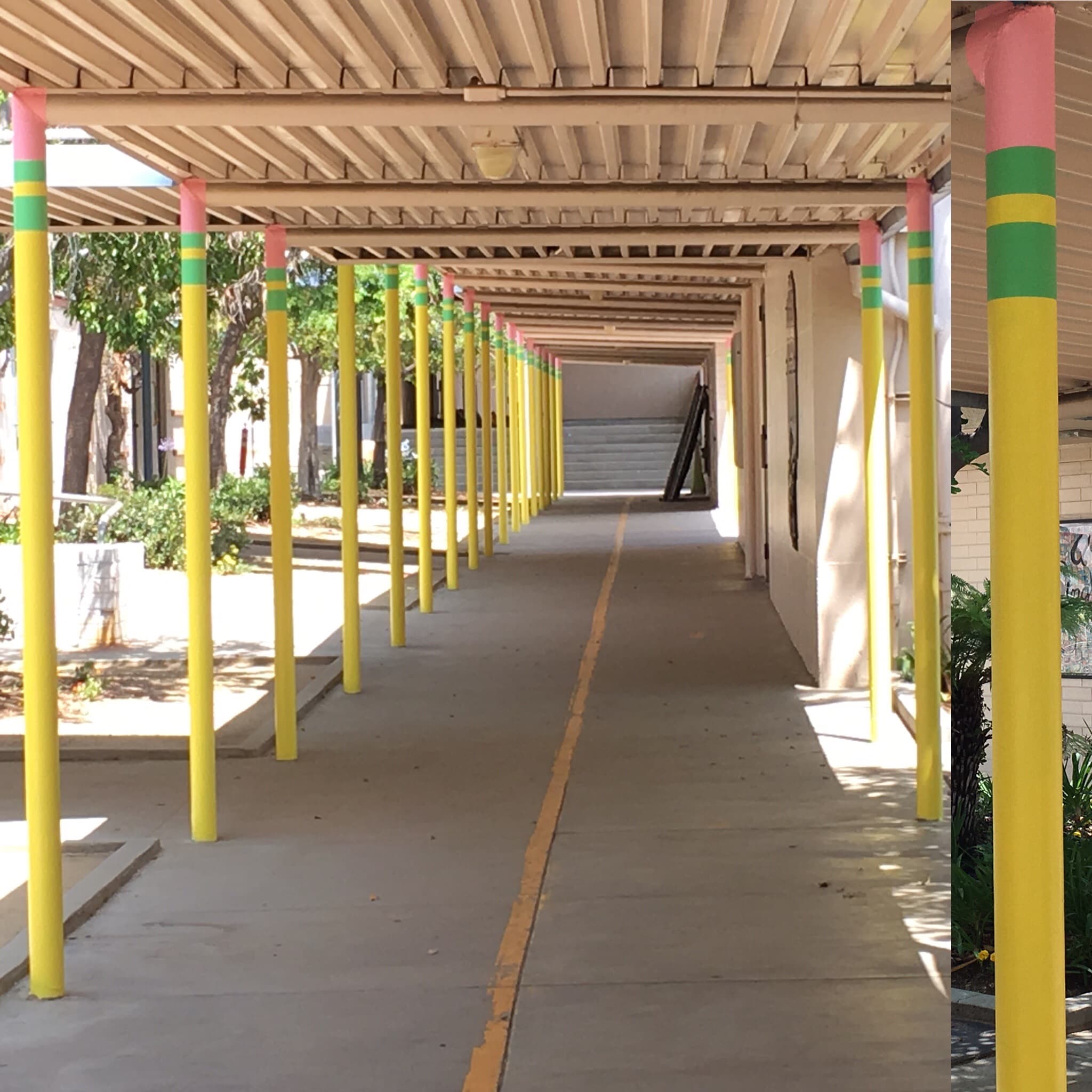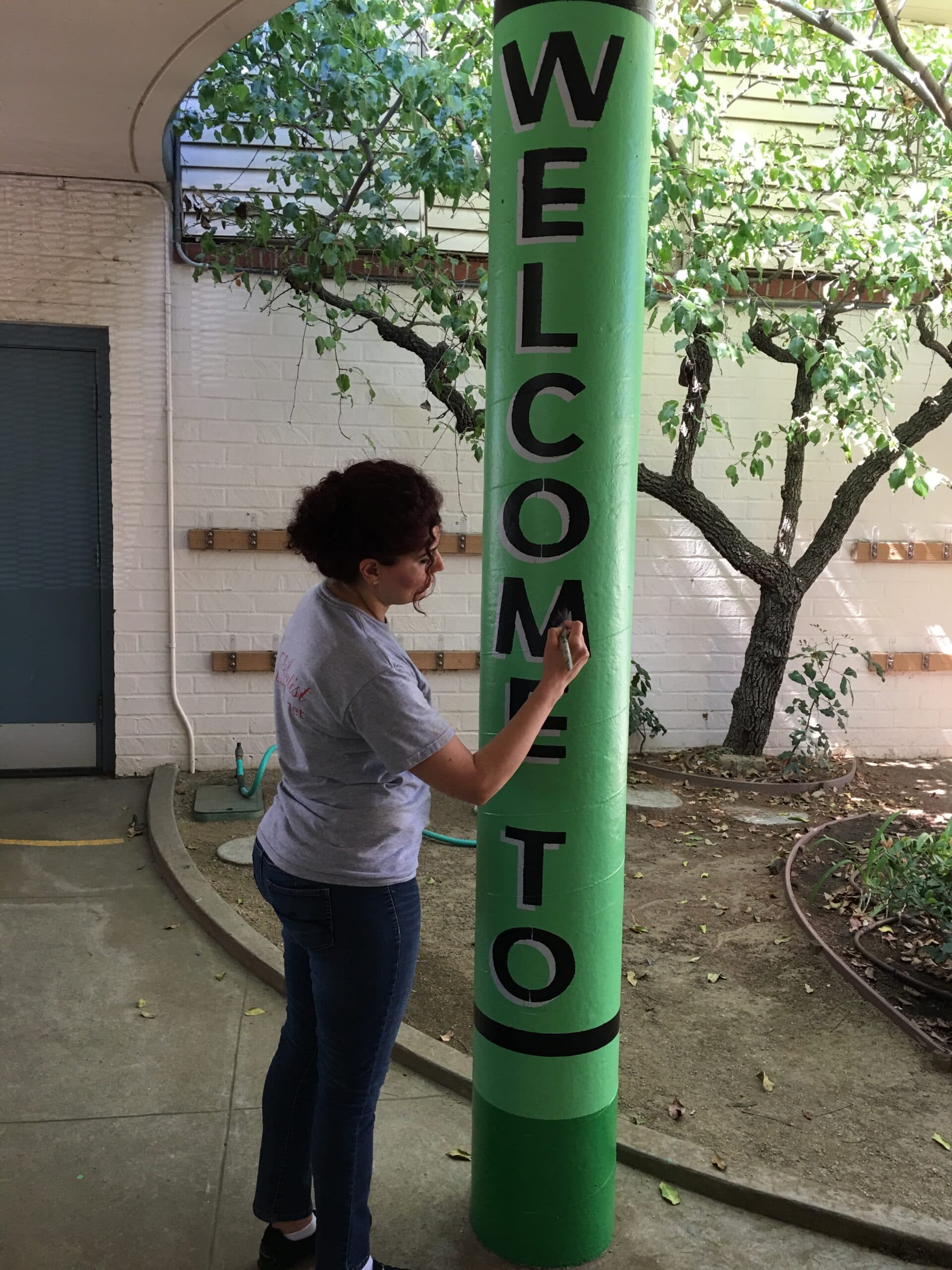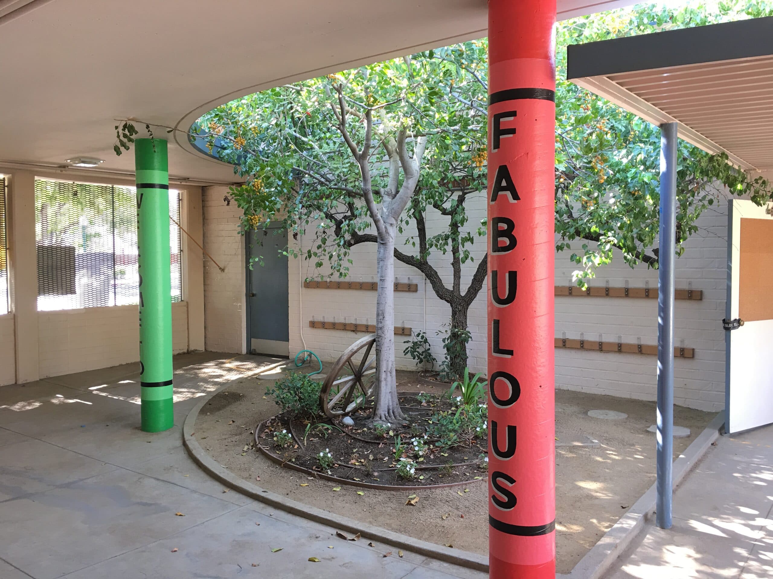 Bringing creativity and school spirit to life, I transformed the entrance columns of Fremont Elementary School into vibrant, oversized crayons, each featuring the school’s inspiring slogan. Extending the theme throughout the hallways, I painted the remaining poles to resemble classic school pencils.