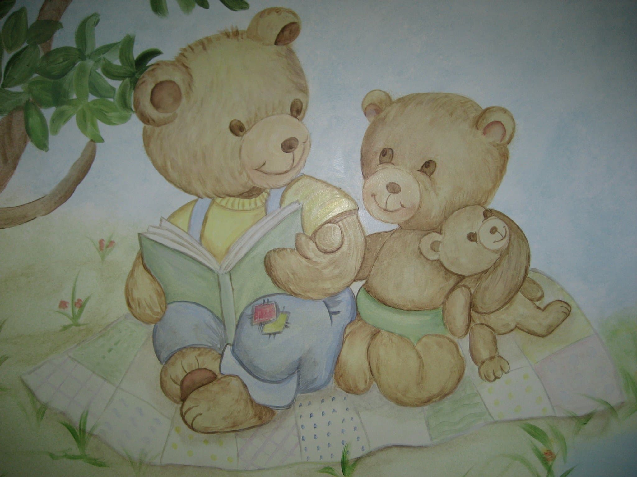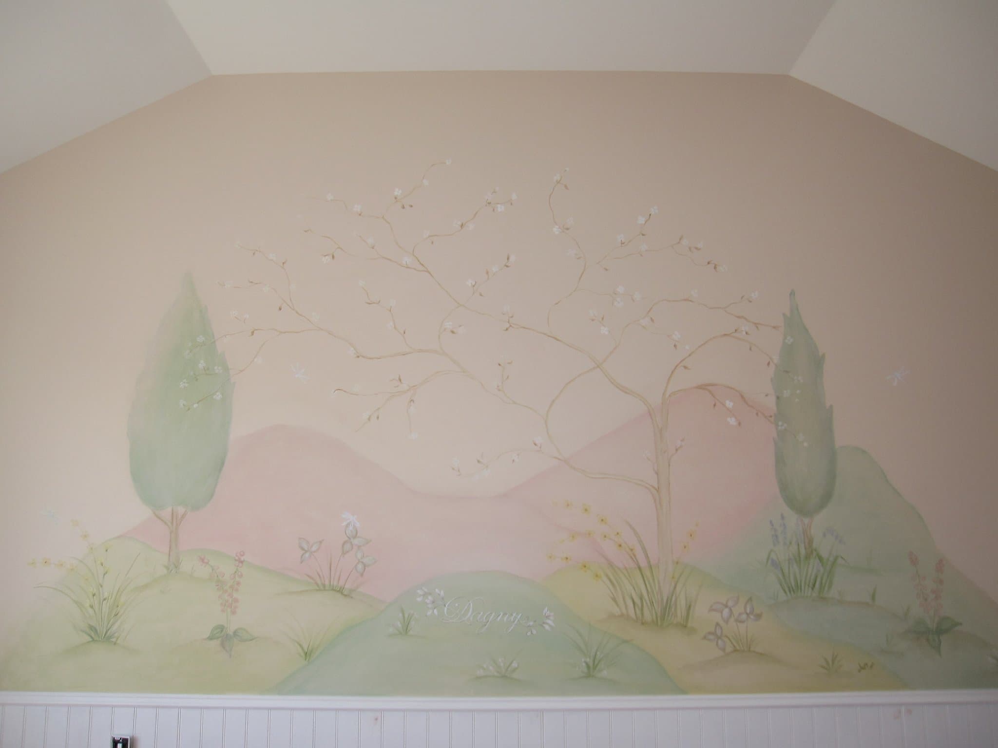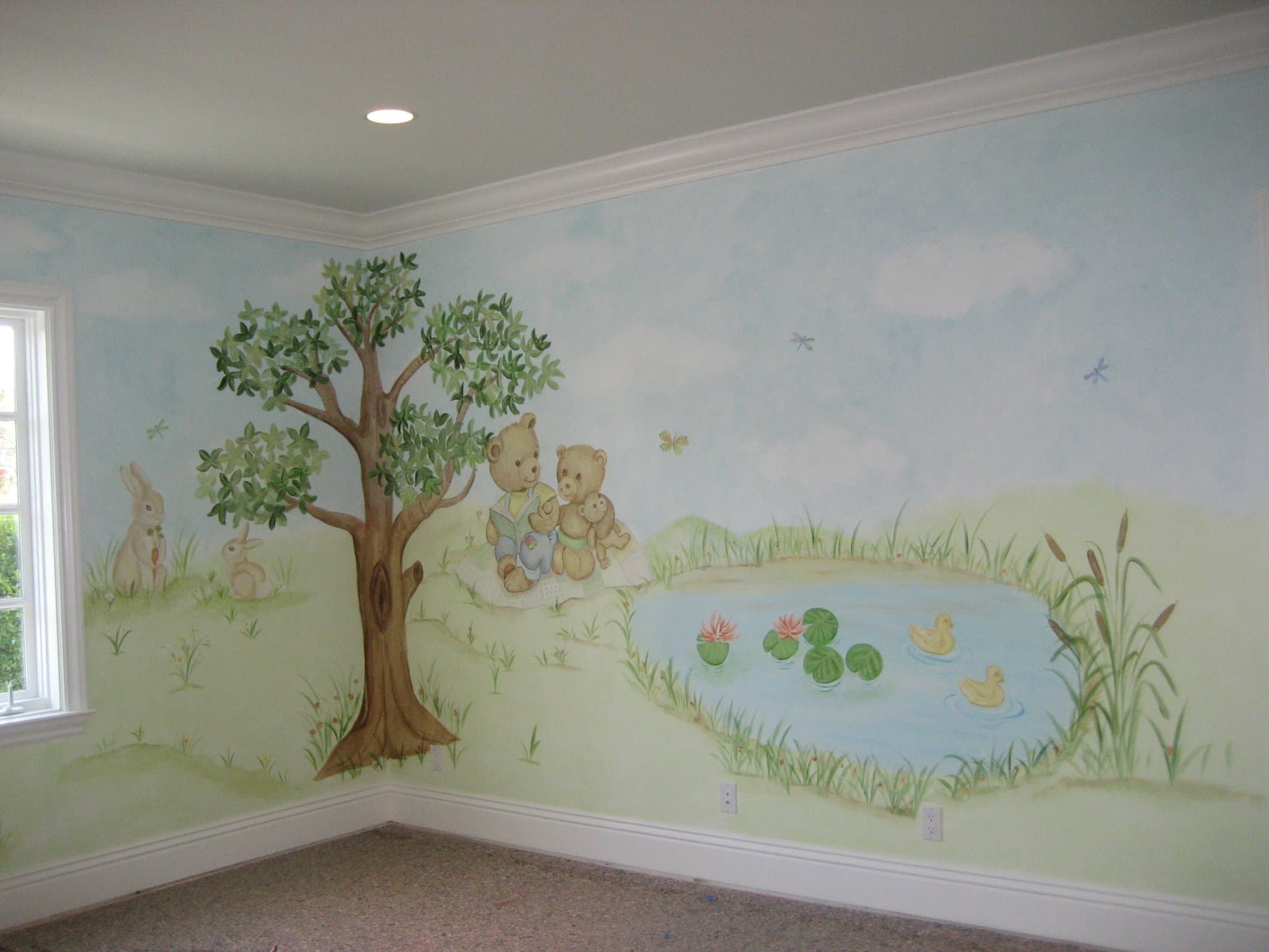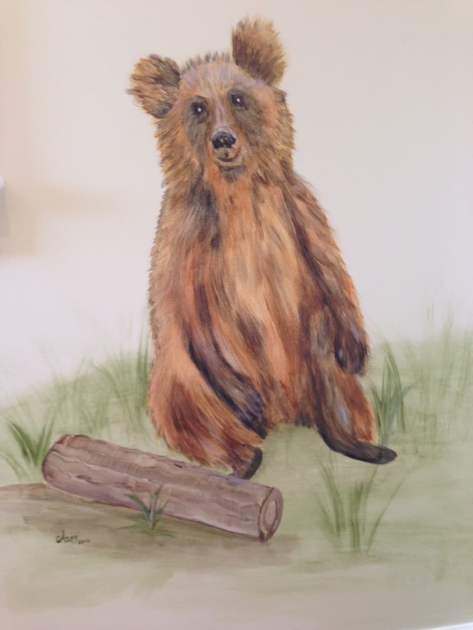 Featuring a gentle bear, a delicate deer and a beautifully detailed tree extends all the way to the ceiling. The artwork is painted in soft, earthy tones to create a warm and soothing atmosphere.