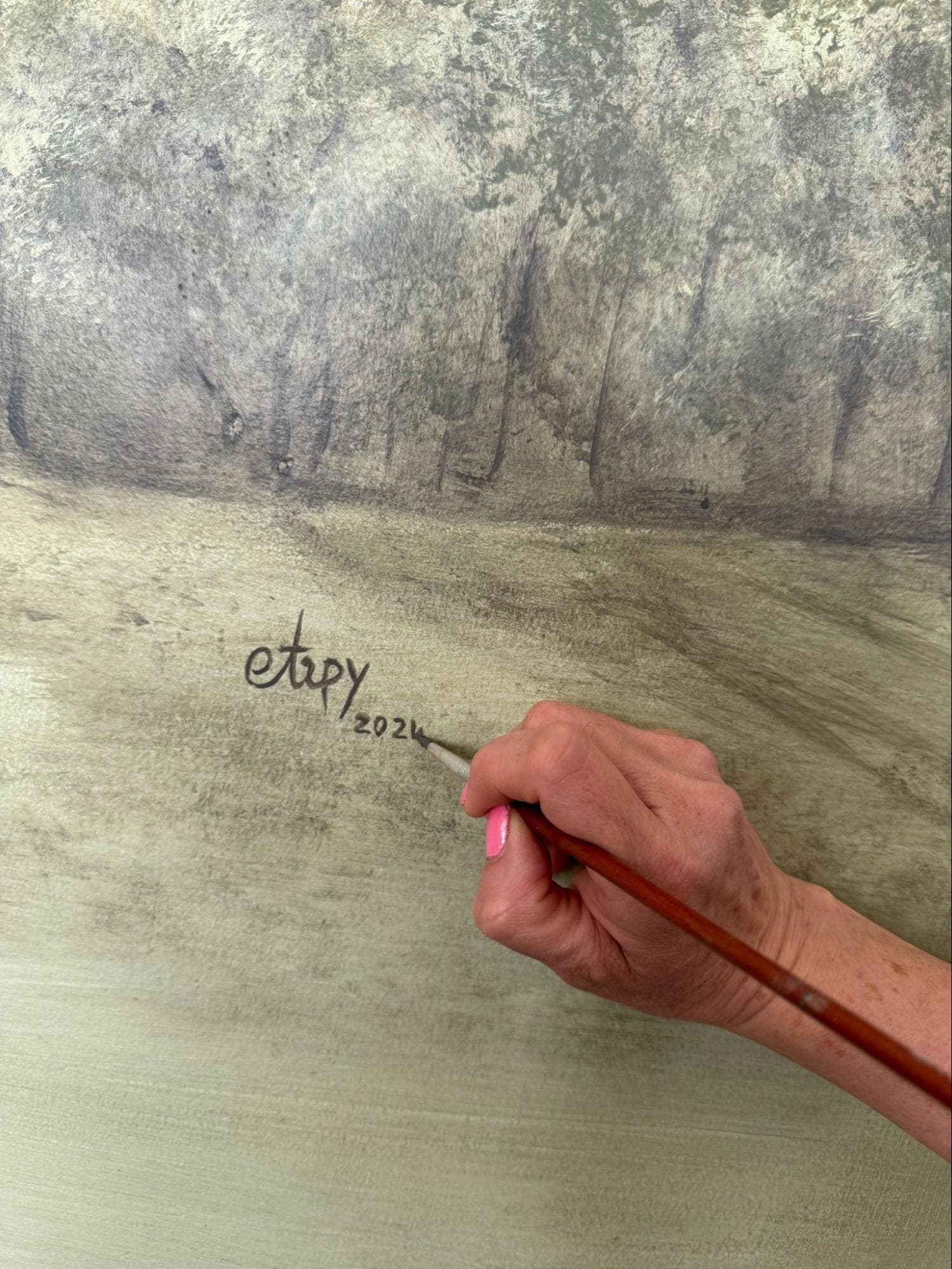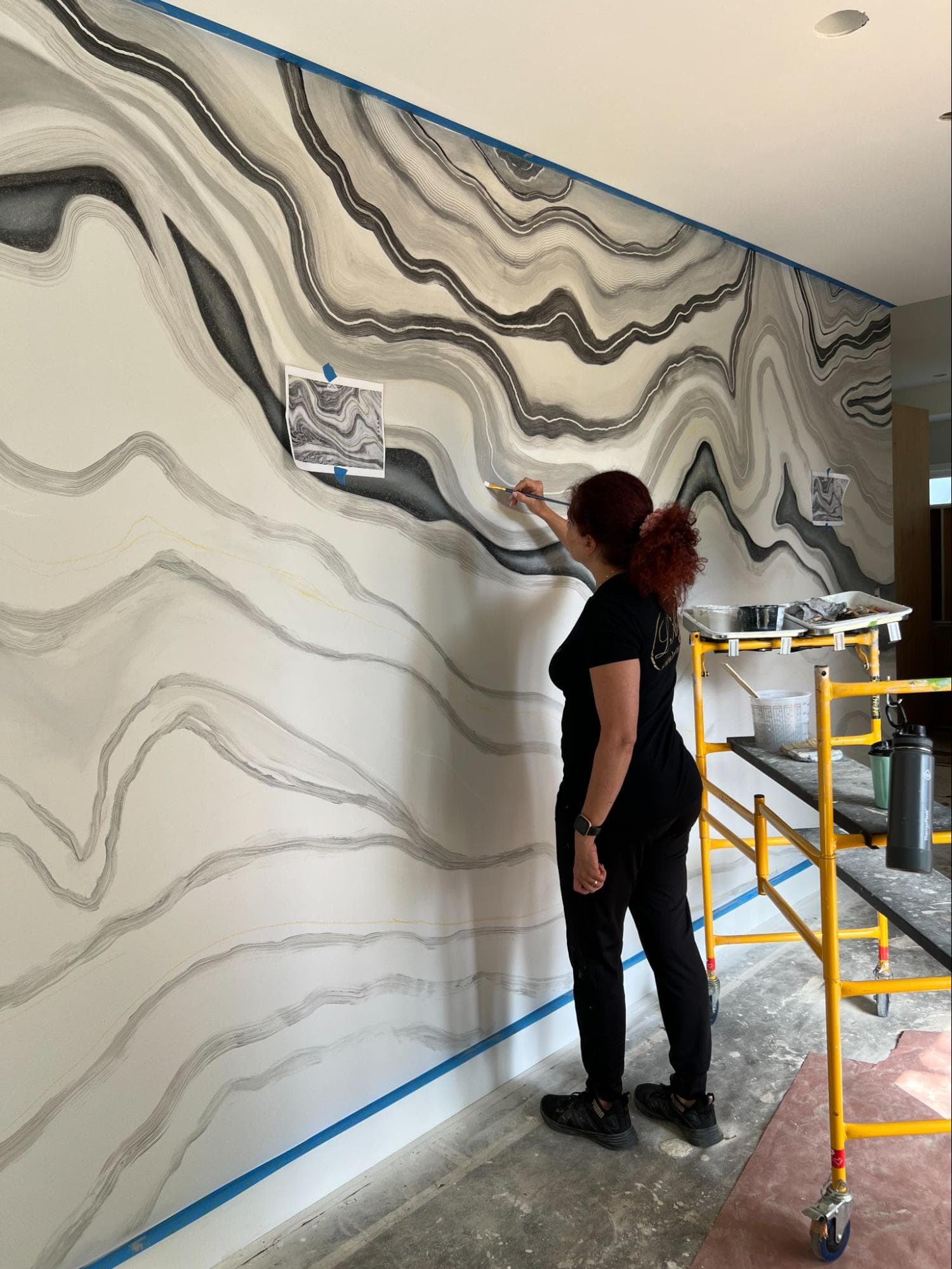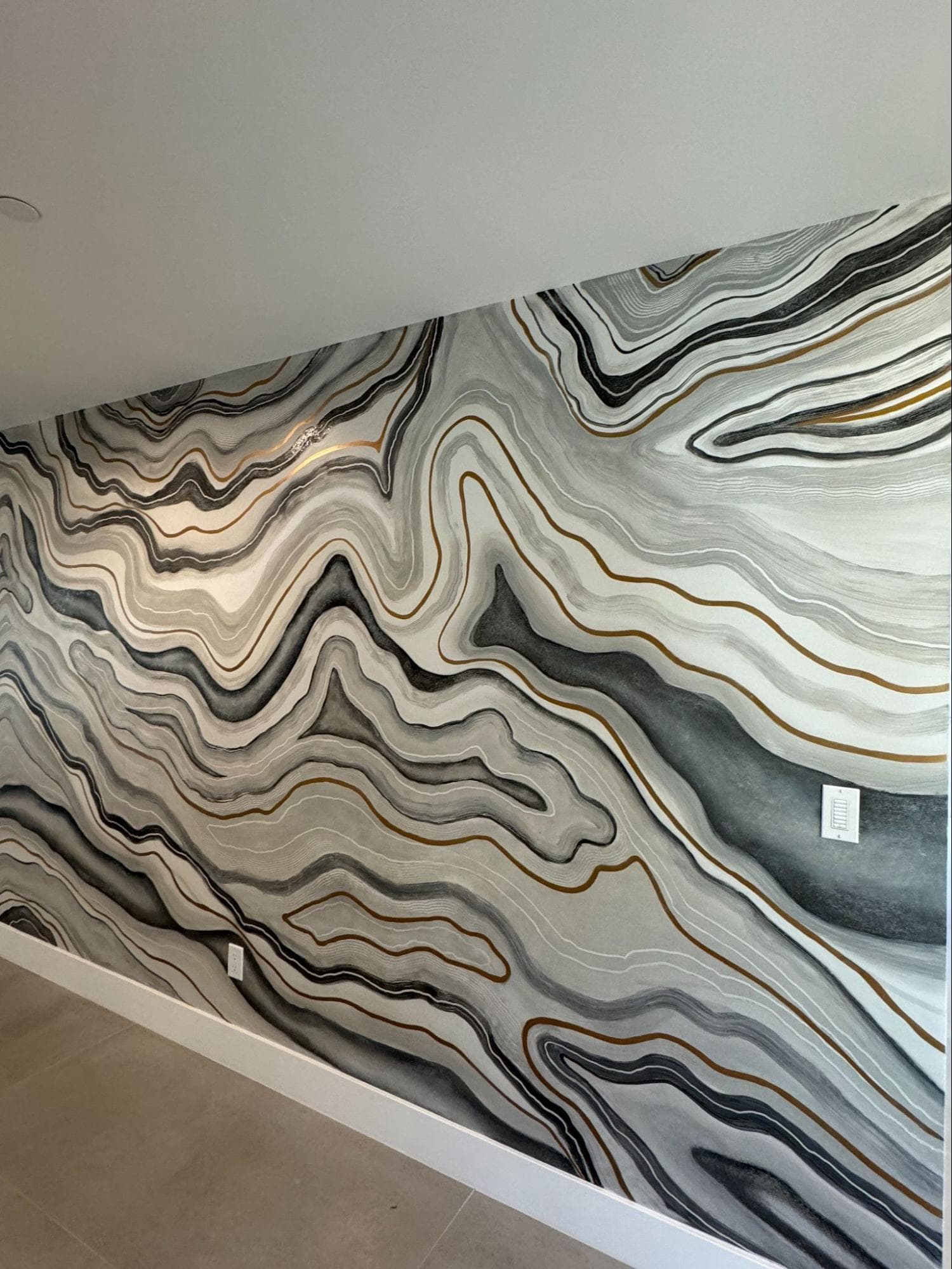 This hand-painted mural mimics the fluid elegance of natural stone. Inspired by the beauty of marble and agate formations. This custom artwork brings a modern, luxurious statement to any interior.