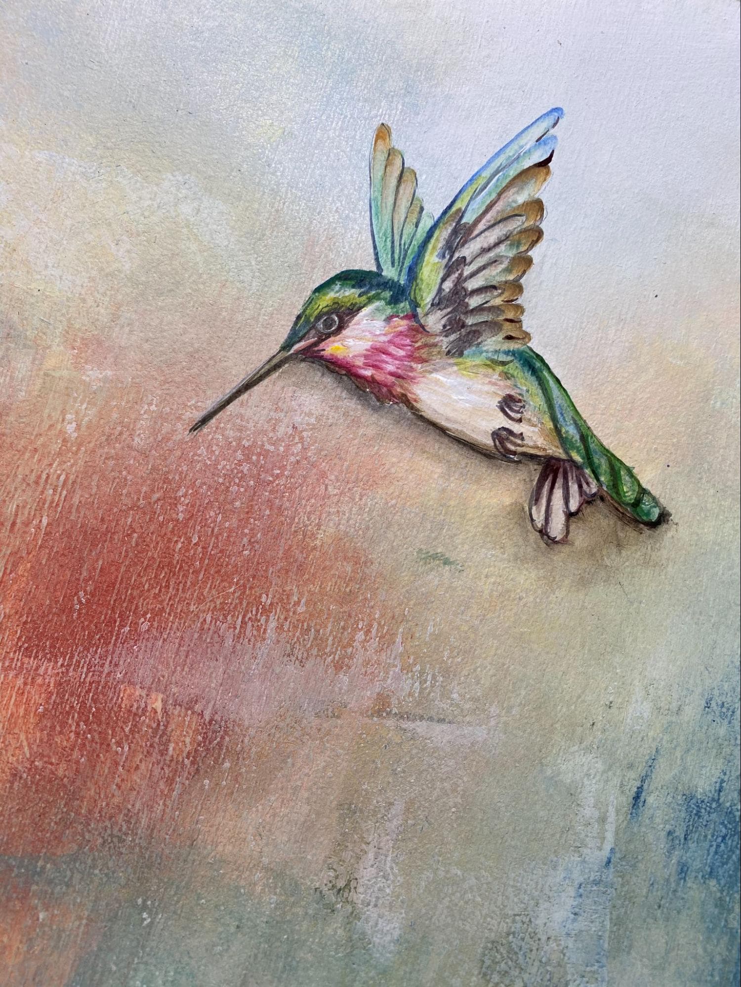 Blue and Green Mural with Birds