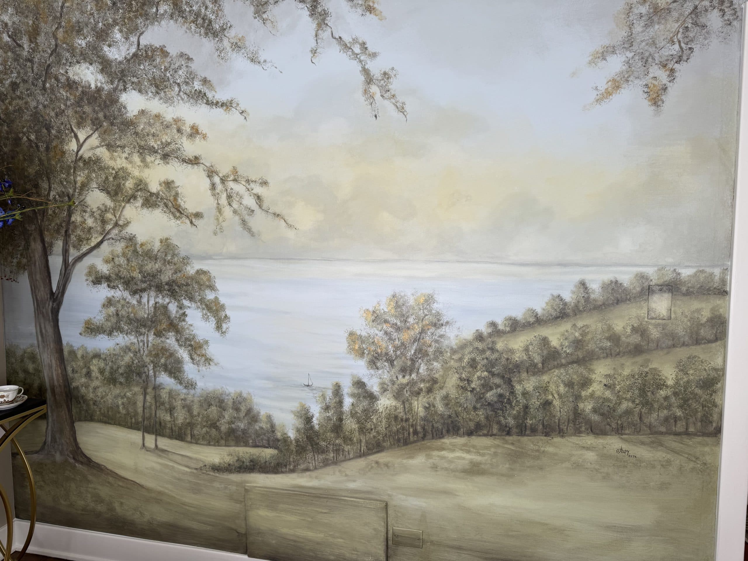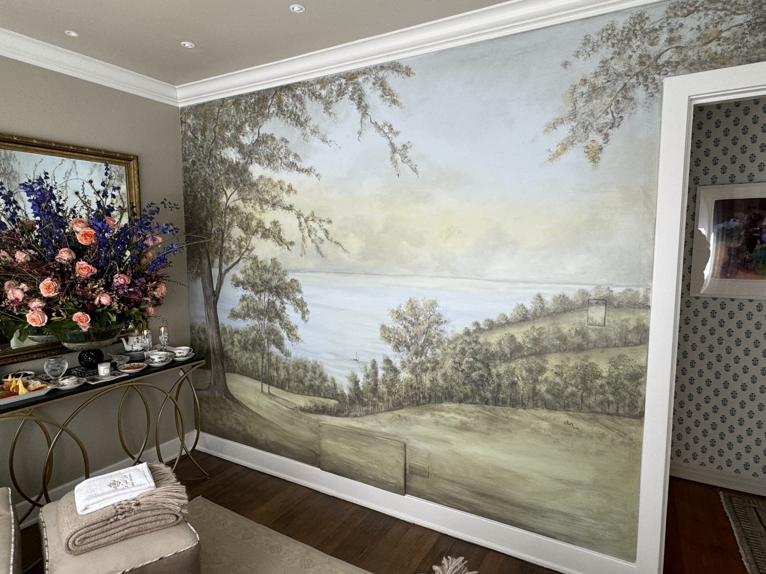 This hand-painted mural brings a serene and timeless ambiance to the spa lounge, creating a peaceful retreat for relaxation. Designed to promote calmness and rejuvenation, this custom mural enhances the spa’s soothing environment, making it the perfect backdrop for moments of quiet reflection and escape.